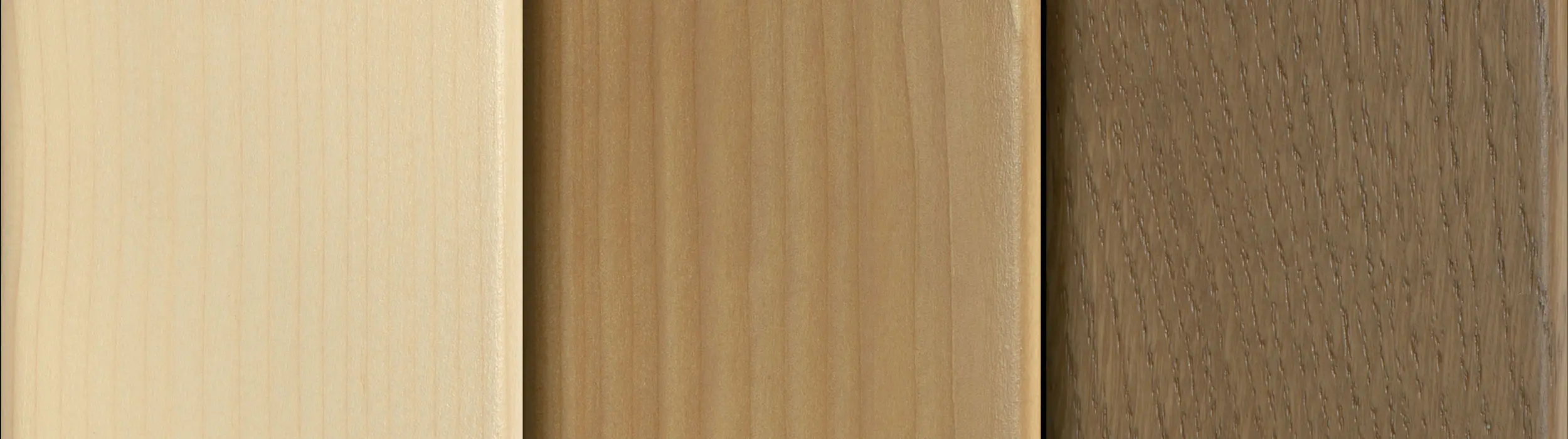 Das Türblatt ist bei Modellen ohne Vorhangplatte (VS) in unterschiedlichen Holz-Ausführungen und Oberflächen möglich.